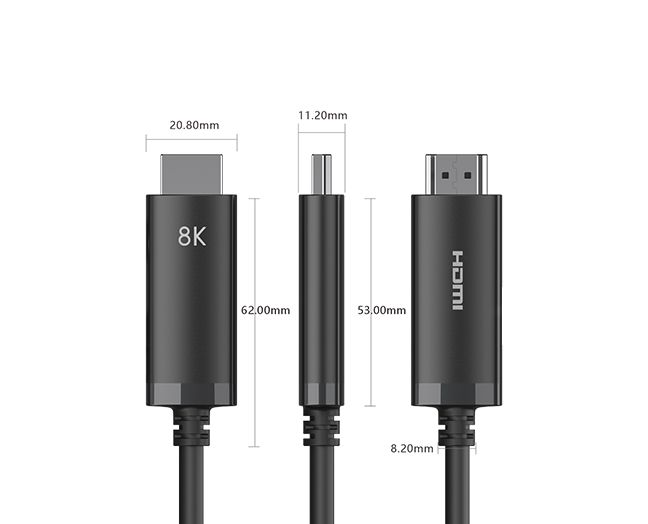 本产品为USB-C转HDMI超高清转接线,,,,,,长度3米,,,,,,锌合金外观设计。。。。。。。。输入装备可兼容TYPE-C接口的手机,,,,,,平板电脑,,,,,,条记本电脑等,,,,,,输出装备可兼容带有HDMI接口的投影仪,,,,,,显示器,,,,,,电视等,,,,,,支持最新HDMI标准,,,,,,支持8K、4K@120Hz的区分率输出,,,,,,将产品的USB-C端与带USB-C接口(DP1.4 Alt Mode 协议,,,,,,兼容DP1.2 Alt Mode)的主机/电脑等装备相连,,,,,,将8K视频传输到支持HDMI接口的电视上实现超大屏超高清显示。。。。。。。。即插即用,,,,,,使用利便,,,,,,简约时尚,,,,,,易于携带。。。。。。。。